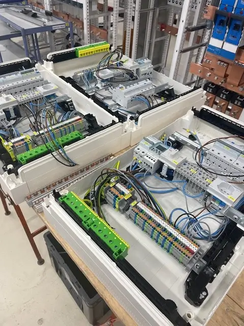 precizna i organizirana montaža električnih ormara, koje je u potpunosti izradio i spojio naš tim. Svaki element pažljivo je odabran i postavljen prema najvišim standardima sigurnosti i funkcionalnosti. Ovakvi ormari se koriste za upravljanje električnom mrežom na gradilištima te osiguravaju pouzdan rad svih priključenih uređaja.